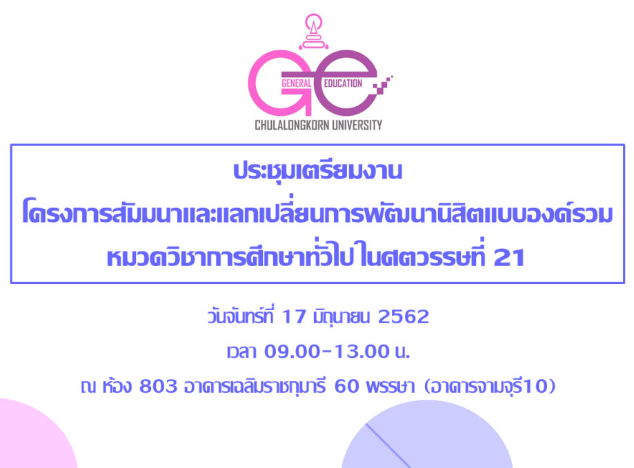ณ ห้อง 803 อาคารเฉลิมราชกุมารี 60 พรรษา (อาคารจามจุรี10) จุฬาลงกรณ์มหาวิทยาลัย